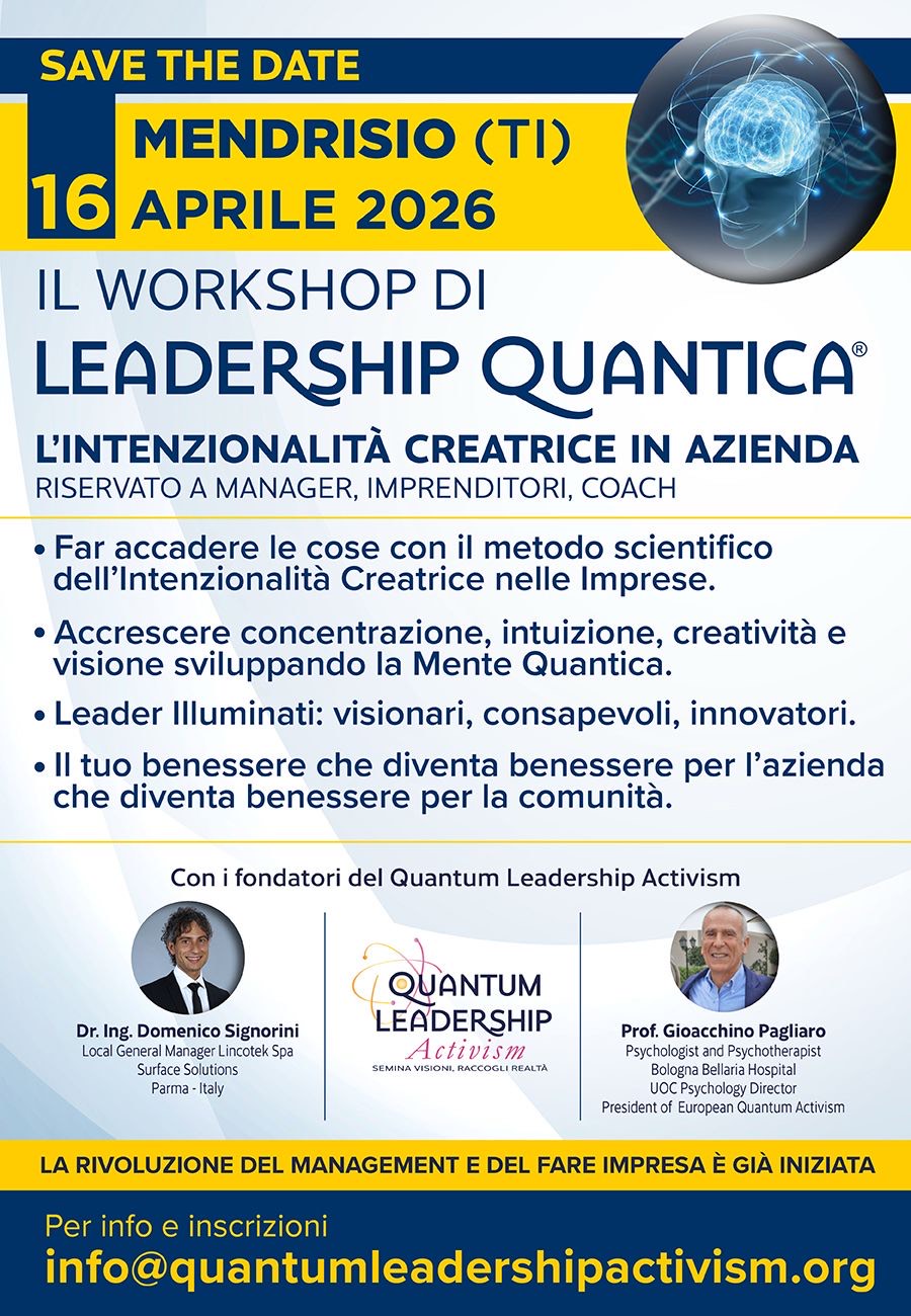 Il Quantum Leadership Activism è stato fondato nel 2020 dai padri fondatori in Italia della Leadership Quantica e Intenzionalità Creatrice in Azienda, l’Ing. Domenico Signorini e il Prof. Gioacchino Pagliaro.